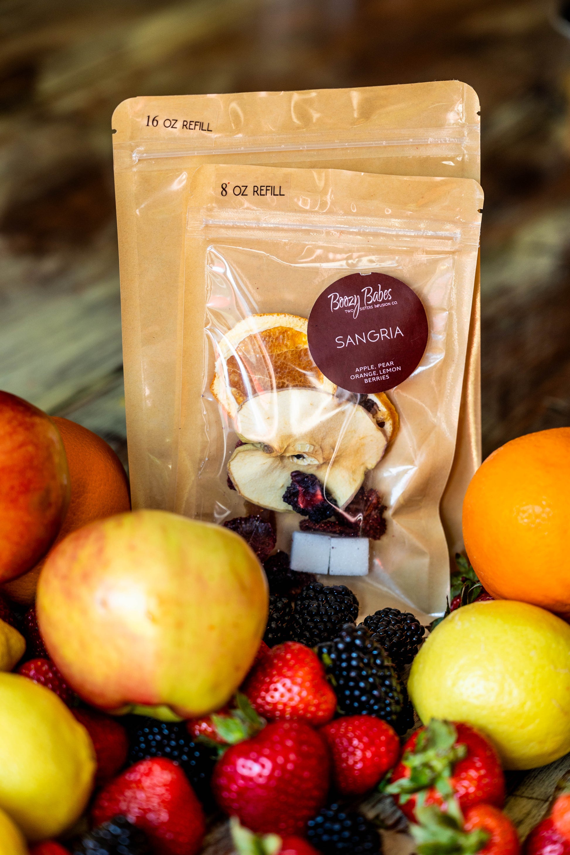 Boozy Babes Infusion Kit includes: Apple, Pear, Orange, Lemon, Berries & Sugar.