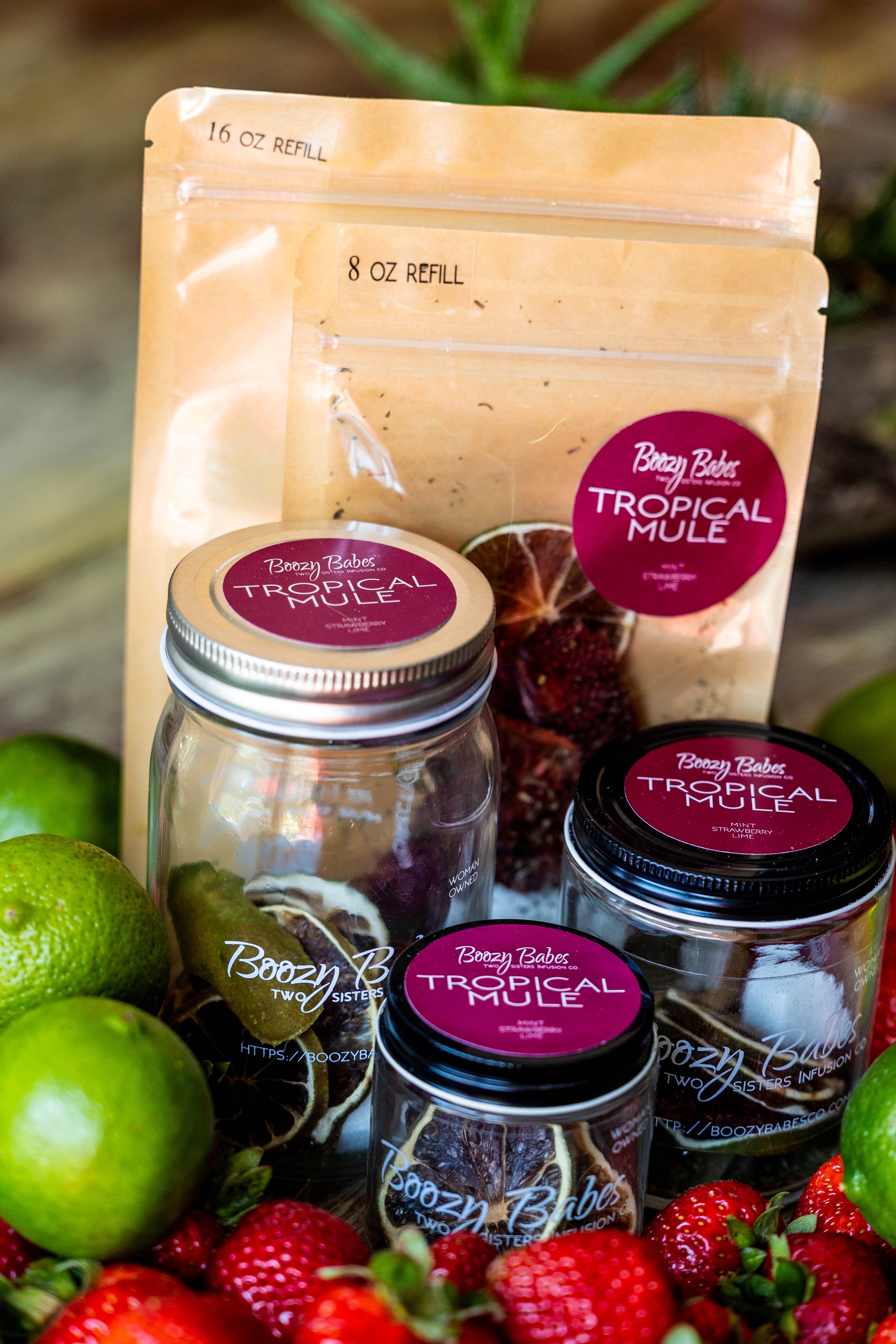 Boozy Babes Infusion Kit includes: Strawberries, Lime, Mint & Sugar.